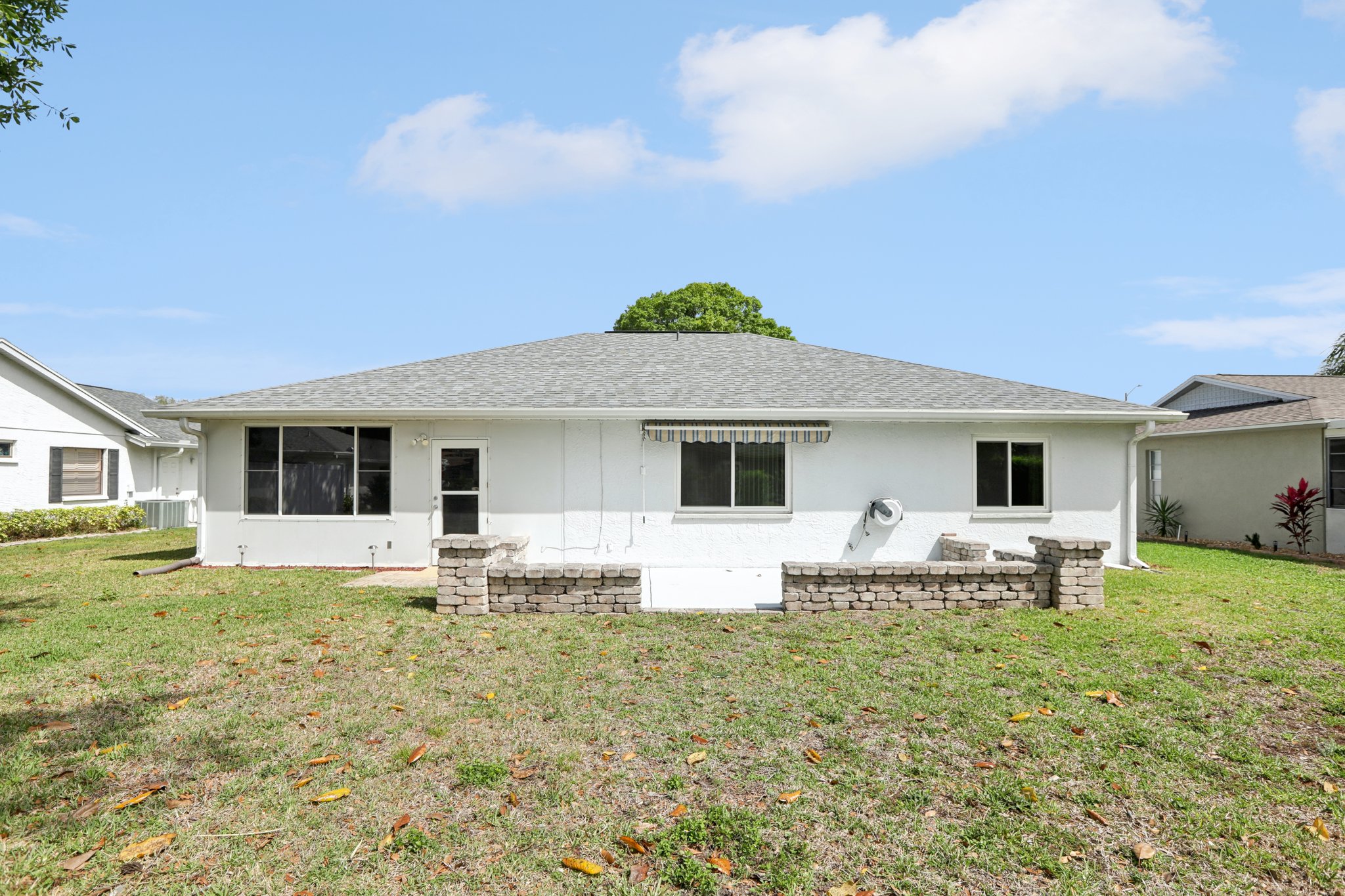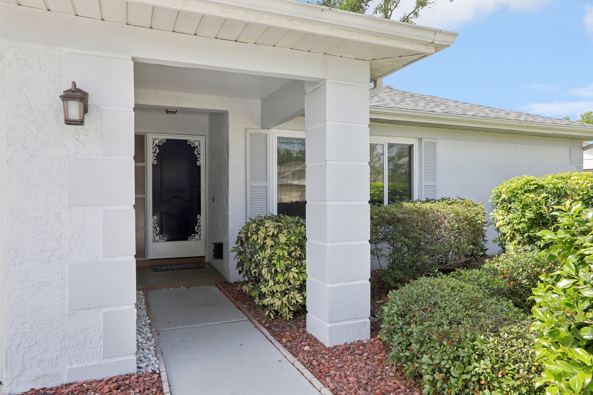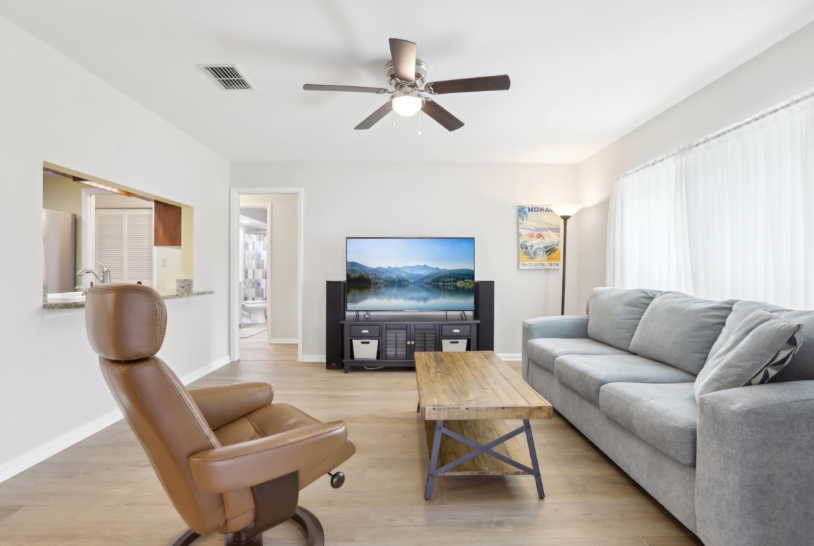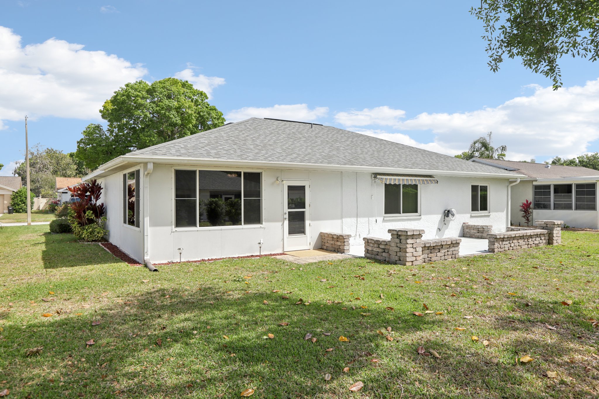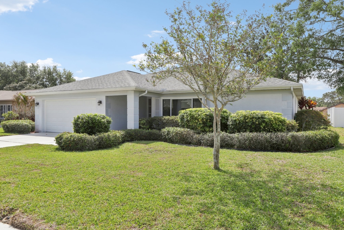 Step into comfort and style with this BEAUTIFULLY UPDATED 2-bedroom, 2-bath home, offering a thoughtful blend of MODERN UPDATES and everyday functionality. Featuring a desirable SPLIT FLOORPLAN, this residence provides privacy and space. Enjoy peace of mind with recent upgrades including a NEWER ROOF AND HVAC—both replaced in 2019—as well as HURRICANE-RATED WINDOWS and coverings throughout. Inside, you’ll find NEW FLOORING and TILE, GRANITE COUNTERTOPS, UPGRADED BATHROOM VANITIES , and a BRAND NEW STOVE, microwave, and refrigerator that bring a fresh, contemporary feel to the space. The kitchen and living areas flow seamlessly, creating an inviting space for entertaining or relaxing. Step outside to a PRIVATE BACK PATIO, complete with an ELECTRIC AWNING—perfect for morning coffee or evening gatherings. An IRRIGATION SYSTEM keeps your lawn lush year-round, and low HOA fees add even more appeal. This home combines quality finishes, smart upgrades, and practical comforts in a well-maintained community. Don’t miss your chance to make it yours!