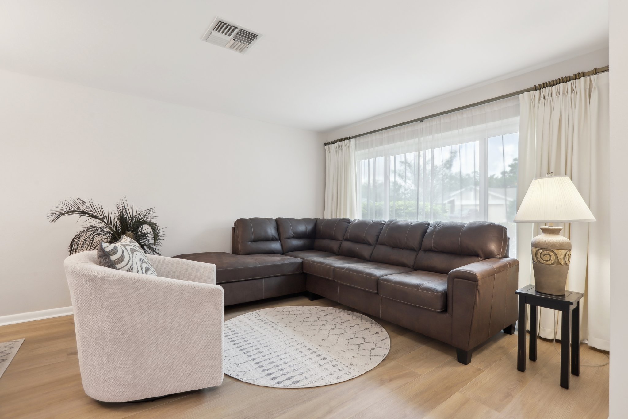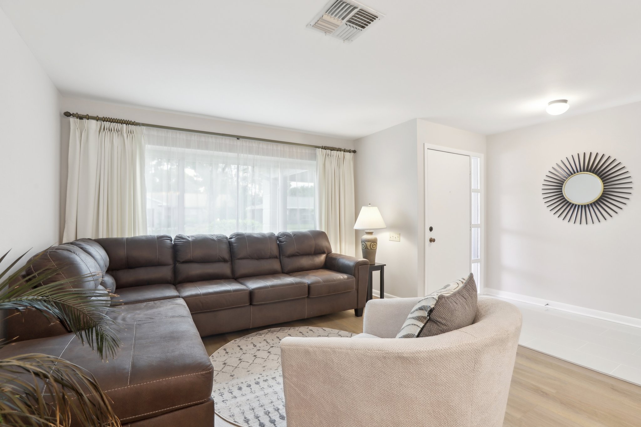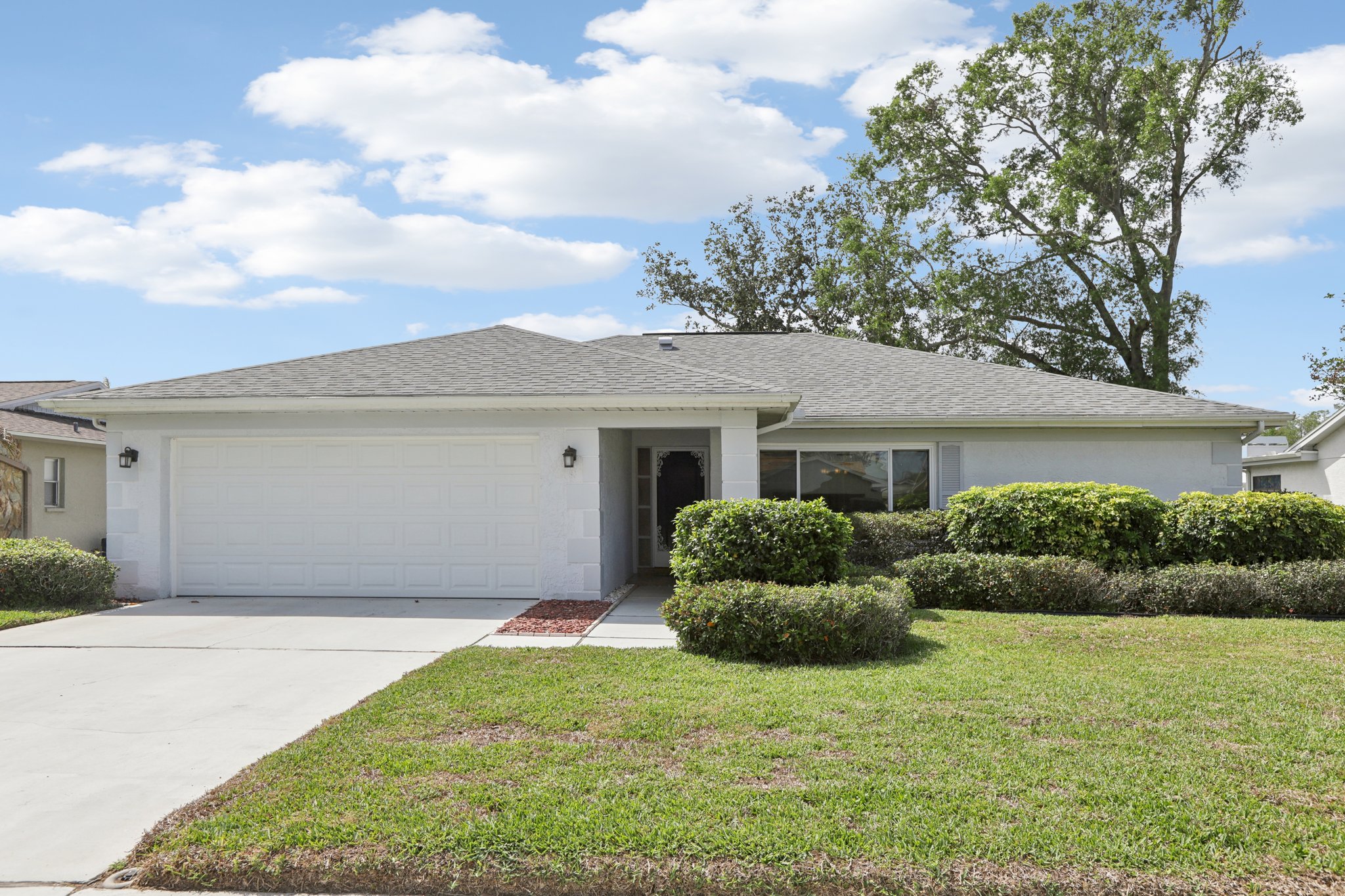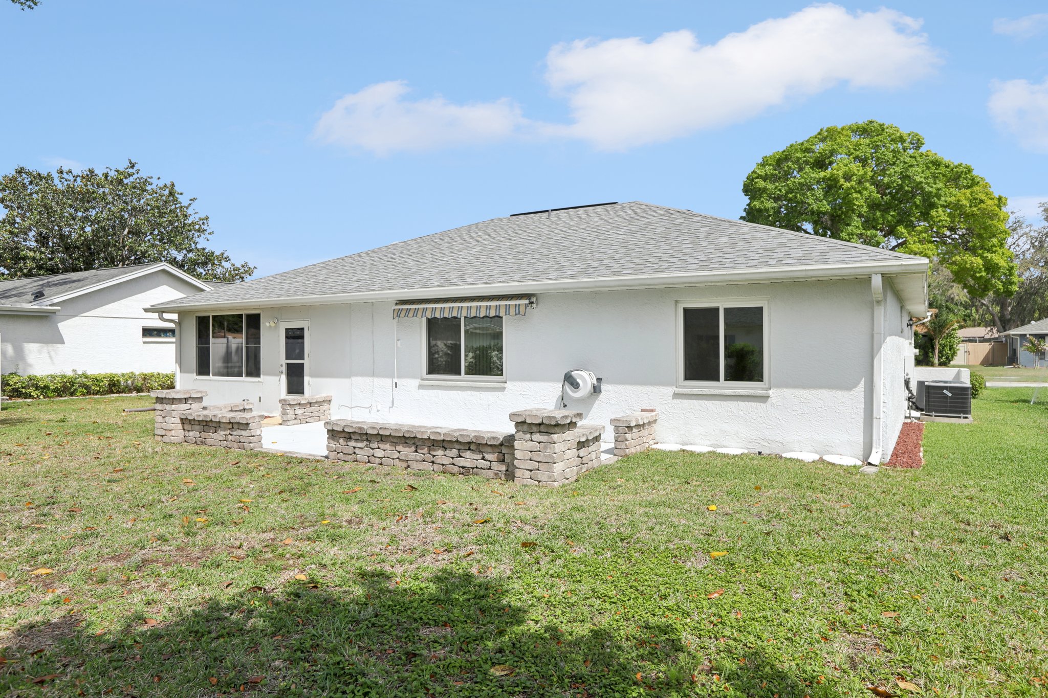 Step into comfort and style with this BEAUTIFULLY UPDATED 2-bedroom, 2-bath home, offering a thoughtful blend of MODERN UPDATES and everyday functionality. Featuring a desirable SPLIT FLOORPLAN, this residence provides privacy and space. Enjoy peace of mind with recent upgrades including a NEWER ROOF AND HVAC—both replaced in 2019—as well as HURRICANE-RATED WINDOWS and coverings throughout. Inside, you’ll find NEW FLOORING and TILE, GRANITE COUNTERTOPS, UPGRADED BATHROOM VANITIES , and a BRAND NEW STOVE, microwave, and refrigerator that bring a fresh, contemporary feel to the space. The kitchen and living areas flow seamlessly, creating an inviting space for entertaining or relaxing. Step outside to a PRIVATE BACK PATIO, complete with an ELECTRIC AWNING—perfect for morning coffee or evening gatherings. An IRRIGATION SYSTEM keeps your lawn lush year-round, and low HOA fees add even more appeal. This home combines quality finishes, smart upgrades, and practical comforts in a well-maintained community. Don’t miss your chance to make it yours!