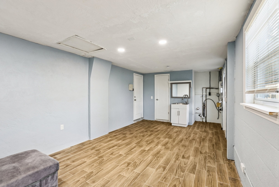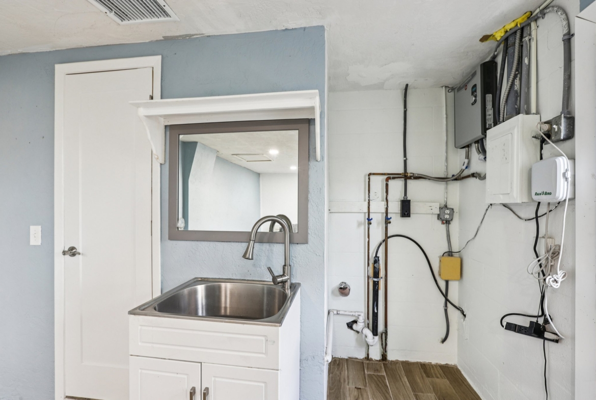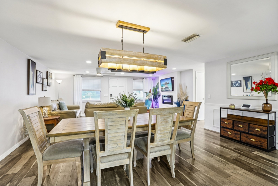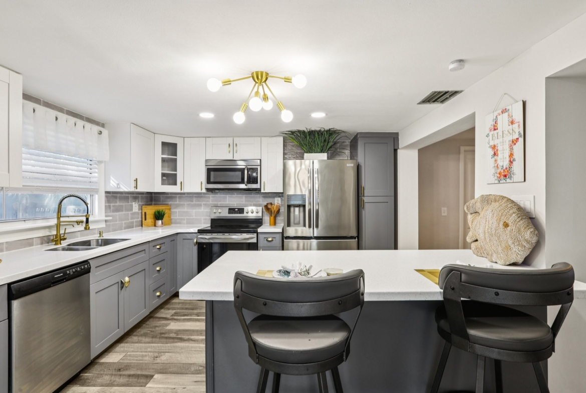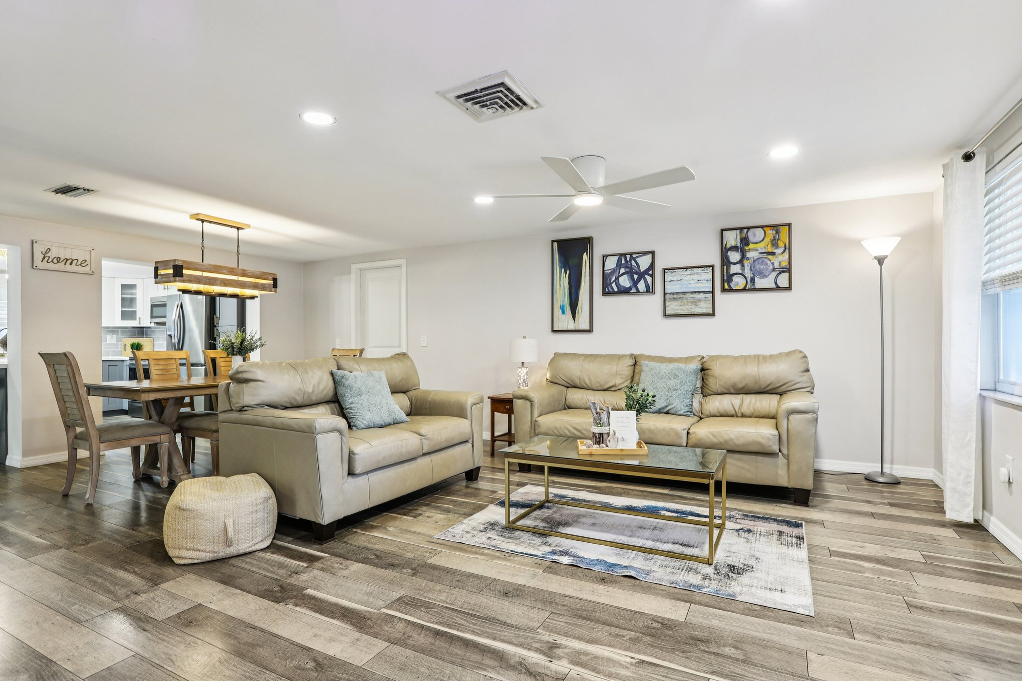 One or more photo(s) has been virtually staged. NOT IN A FLOOD ZONE ! Step into a home that feels warm, comfortable, and beautifully refreshed from top to bottom. This fully renovated residence showcases thoughtful design choices that blend modern style with everyday ease. The gorgeous kitchen takes center stage with solid surface counters, sleek grey cabinetry, a generous island, and stainless steel appliances that make cooking and gathering a joy. Laminate flooring flows throughout, creating a cohesive and inviting atmosphere. Practical upgrades add peace of mind, including a top tier roof that is eight years old, a tankless water heater, and an irrigation system on a well that keeps the yard looking its best without added cost. Smart lighting in the main areas adds convenience and enhances the home’s modern feel. A screened porch offers the ideal spot to enjoy morning coffee or unwind in the shade, while the privacy fenced backyard creates a quiet outdoor retreat complete with a shed for extra storage. The garage has been converted into a bonus room that provides flexible space for work, play, or hobbies and sits just off the kitchen for convenient everyday access. With its warm character, modern finishes, thoughtful upgrades, and versatile layout, this home is ready to welcome its next owner. List Agent is Owner: Contact for Private Showings