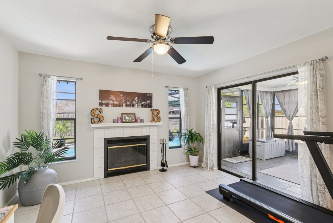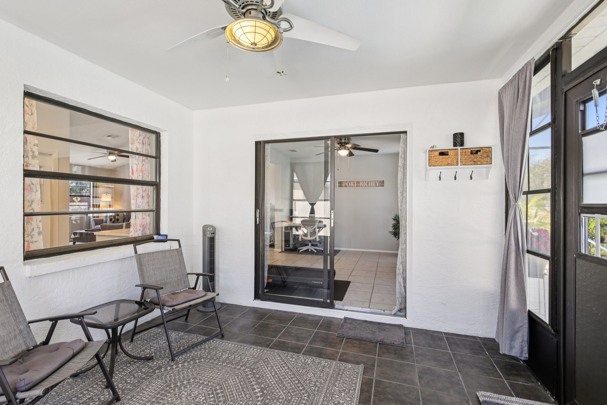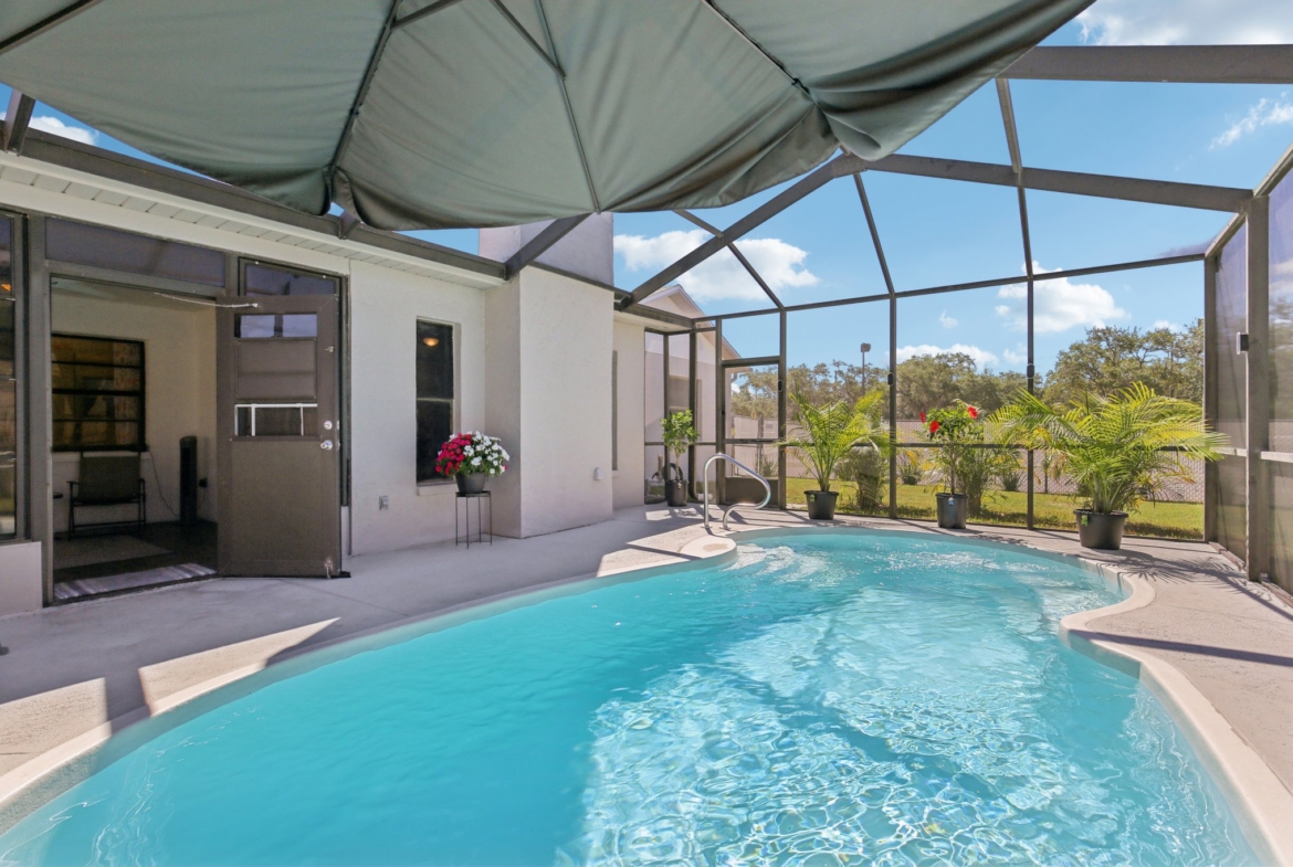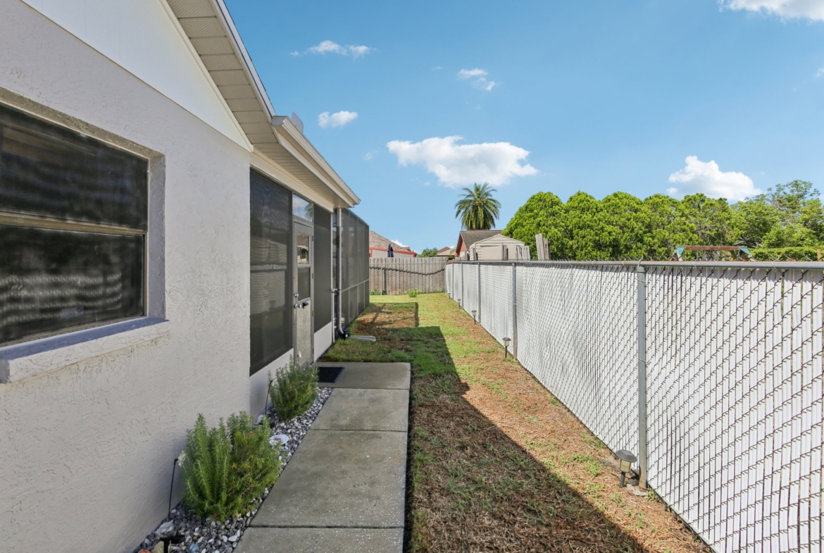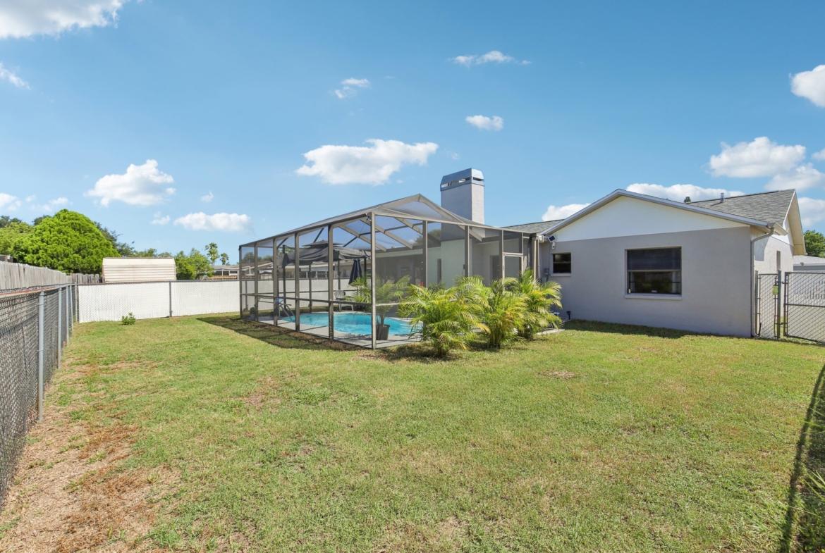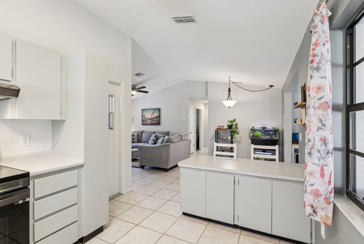 Welcome to this well-maintained 2-bedroom, 2-bath pool home with a 1-car garage, ideally located in Pasco. This home offers a bright, open floor plan with cathedral and vaulted ceilings that create a spacious and inviting atmosphere. The living areas feature updated porcelain tile flooring, while the bedrooms have wood laminate. Both bathrooms are finished with ceramic tile. The family room includes a fireplace and sliding glass doors that lead to a large Florida room and a screened in-ground pool. The pool area is surrounded by cool deck surfacing, making it a great space for relaxing or entertaining. The kitchen provides ample cabinet space, generous countertops, appliances, and a convenient breakfast bar for casual dining. The oversized garage includes a workbench, A/C, and peel-and-stick wood-look flooring, making it ideal for use as a workshop. It also houses a matching black stainless steel Whirlpool washer and dryer set from October 2023, which will stay with the home. On the side of the garage, you’ll find an attached storage shed with power for added convenience. Located close to shopping, restaurants, the library, and public transportation, this home offers comfort, space, and a great Florida lifestyle. Schedule your visit today!