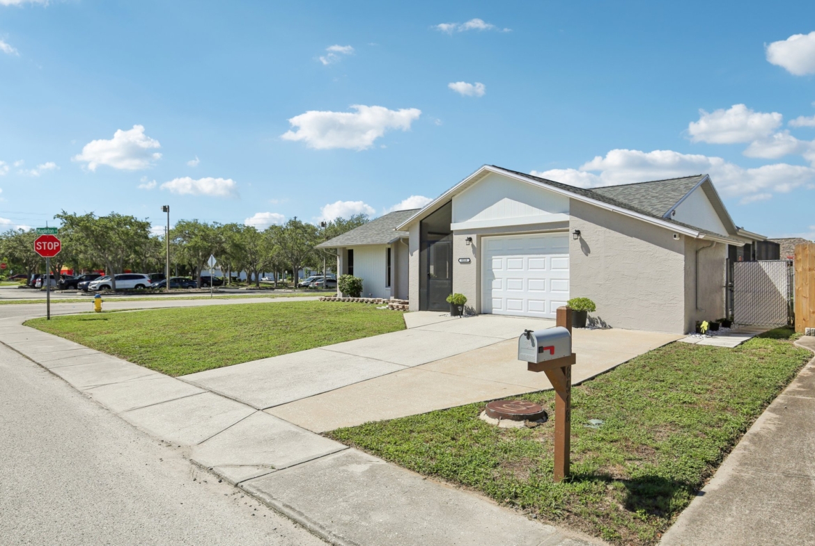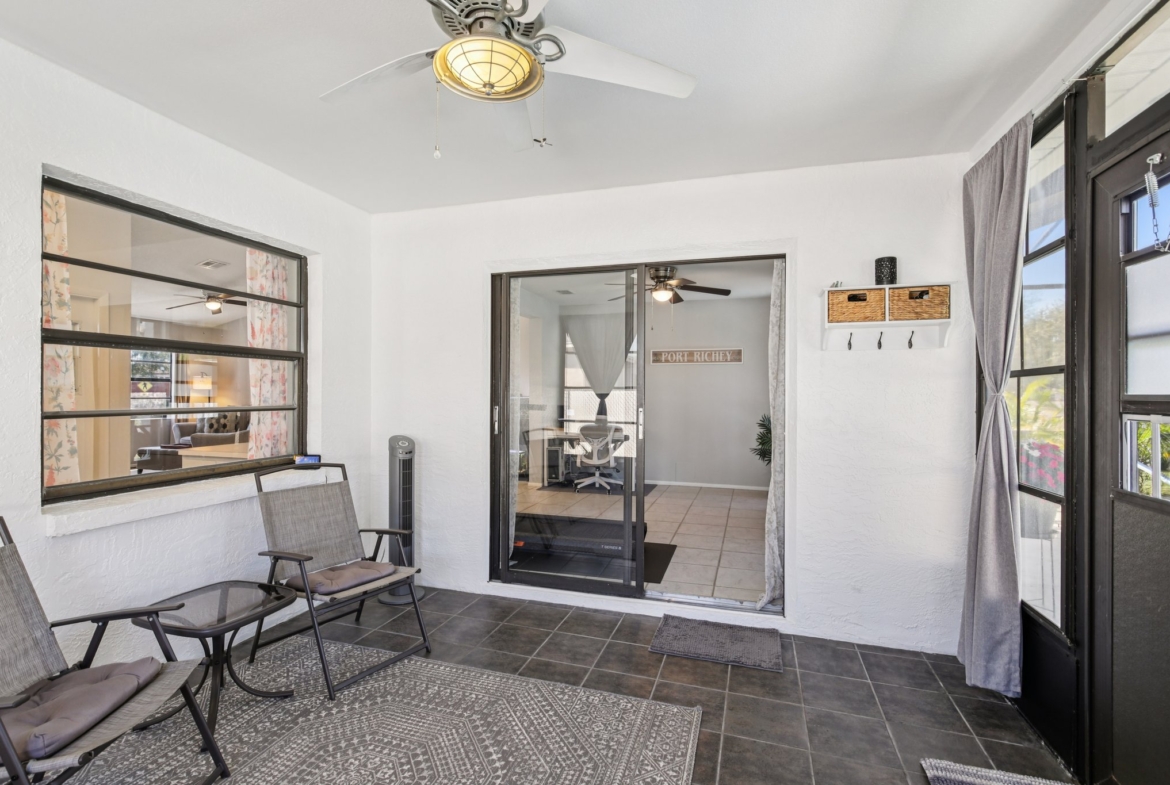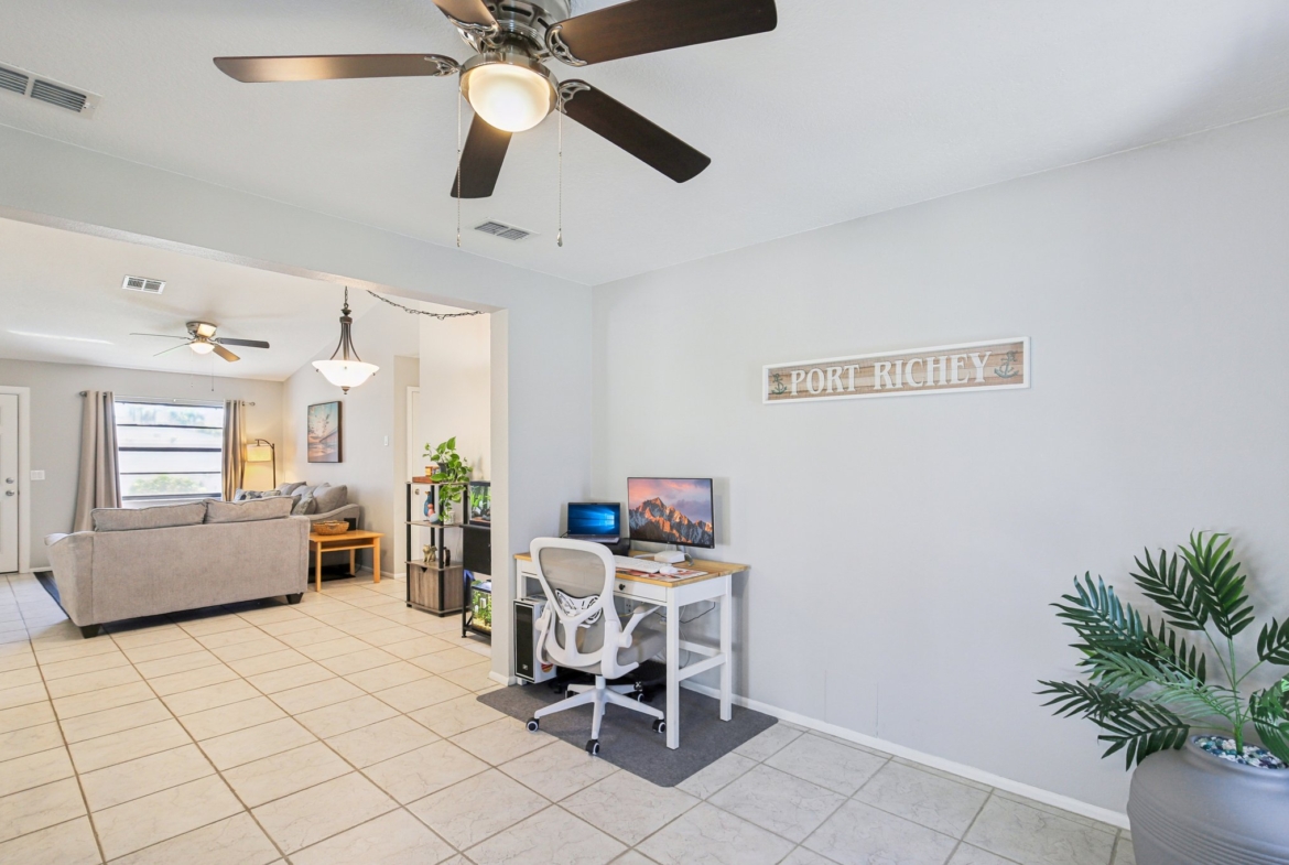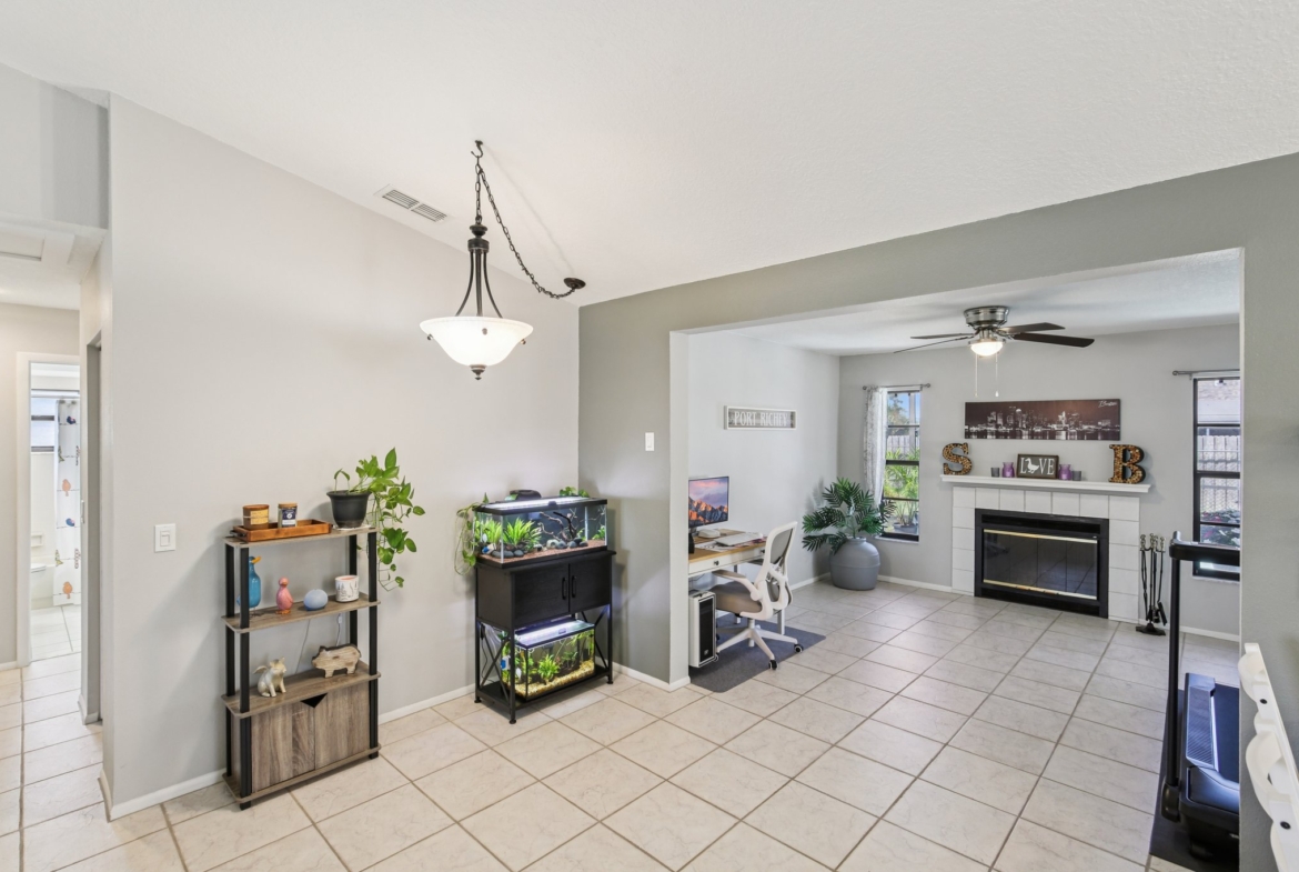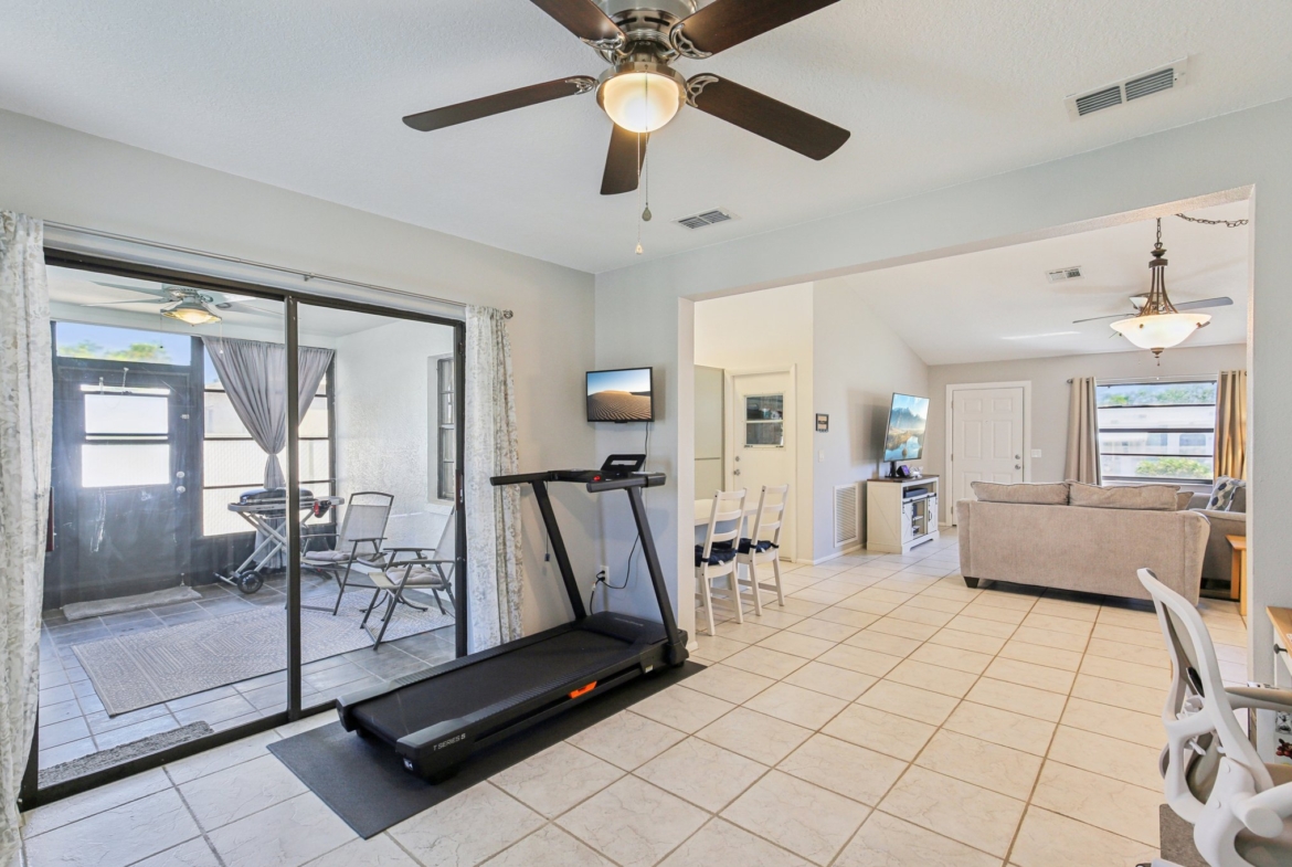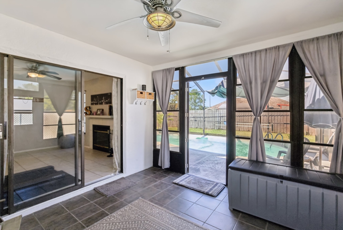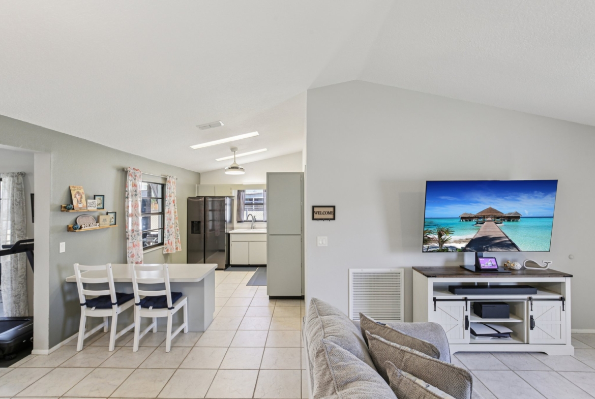 Welcome to this well-maintained 2-bedroom, 2-bath pool home with a 1-car garage, ideally located in Pasco. This home offers a bright, open floor plan with cathedral and vaulted ceilings that create a spacious and inviting atmosphere. The living areas feature updated porcelain tile flooring, while the bedrooms have wood laminate. Both bathrooms are finished with ceramic tile. The family room includes a fireplace and sliding glass doors that lead to a large Florida room and a screened in-ground pool. The pool area is surrounded by cool deck surfacing, making it a great space for relaxing or entertaining. The kitchen provides ample cabinet space, generous countertops, appliances, and a convenient breakfast bar for casual dining. The oversized garage includes a workbench, A/C, and peel-and-stick wood-look flooring, making it ideal for use as a workshop. It also houses a matching black stainless steel Whirlpool washer and dryer set from October 2023, which will stay with the home. On the side of the garage, you’ll find an attached storage shed with power for added convenience. Located close to shopping, restaurants, the library, and public transportation, this home offers comfort, space, and a great Florida lifestyle. Schedule your visit today!