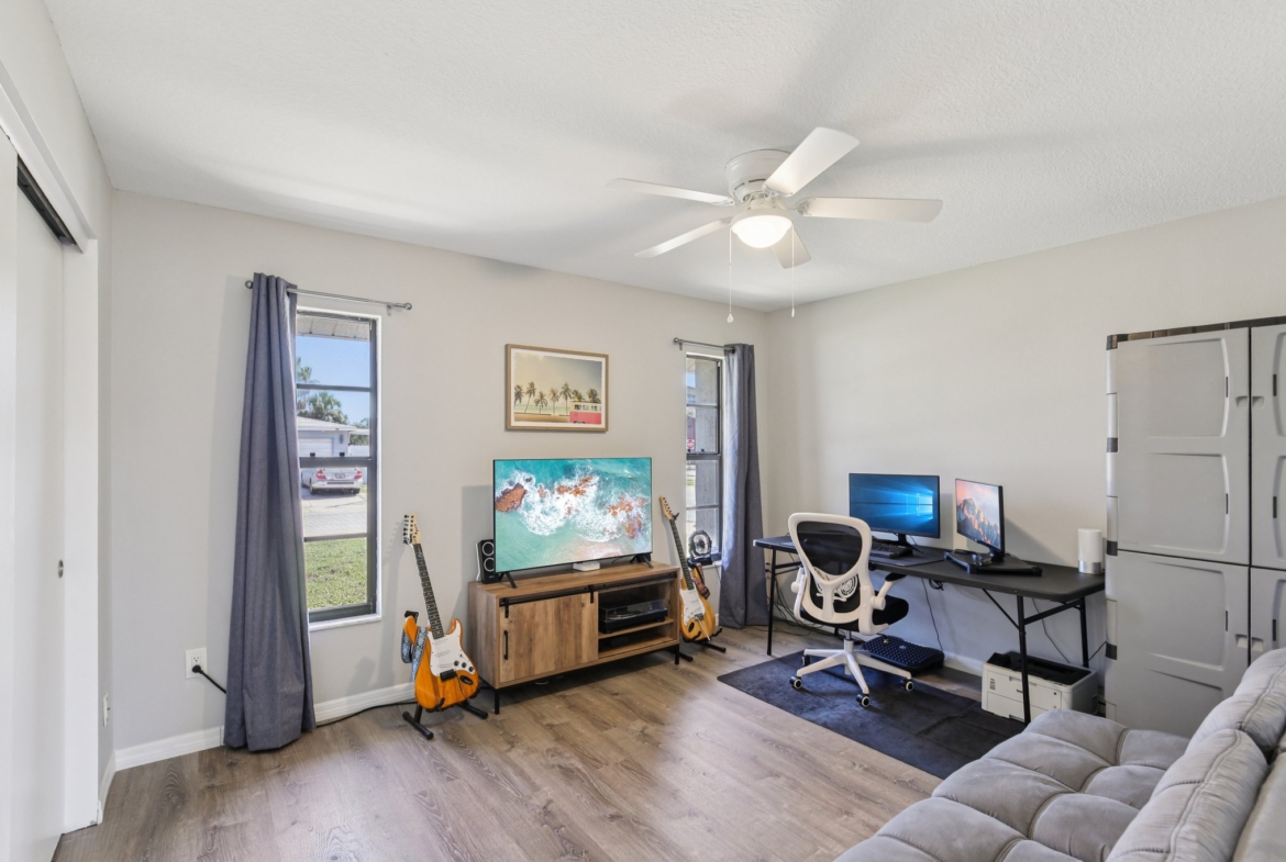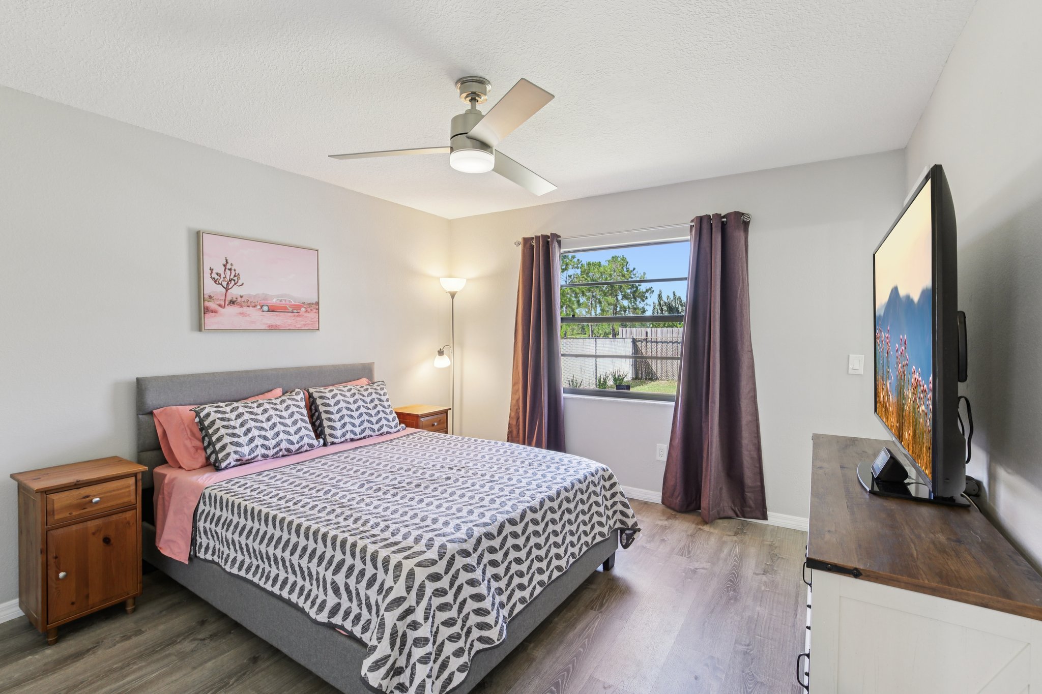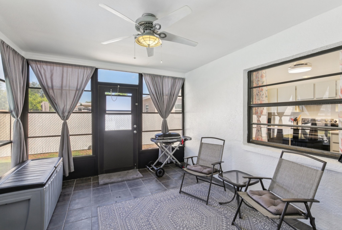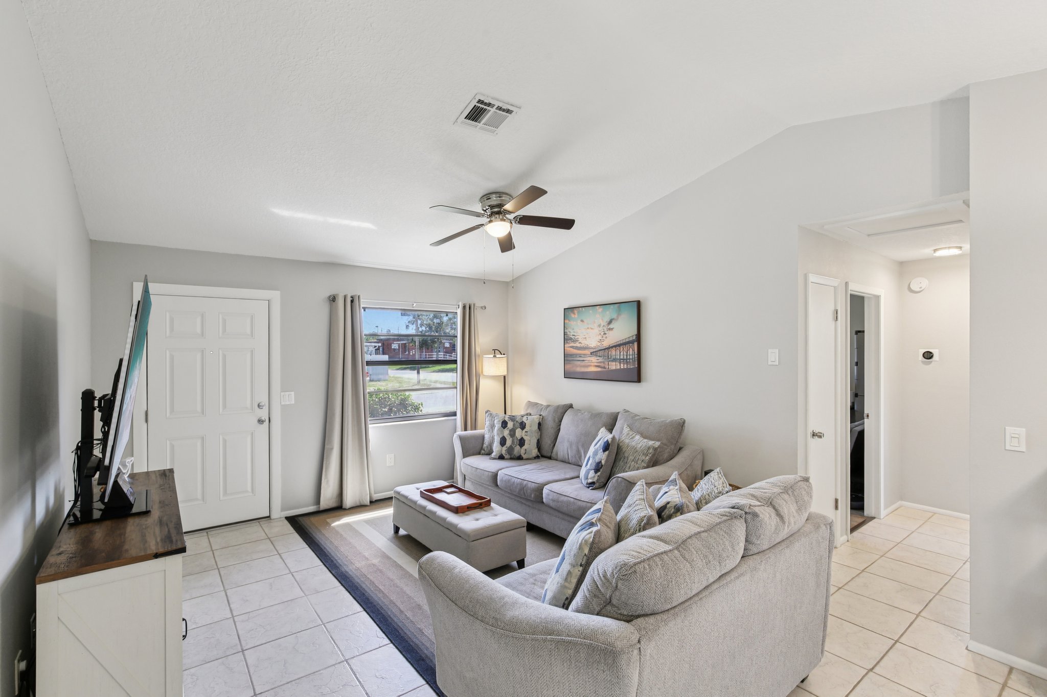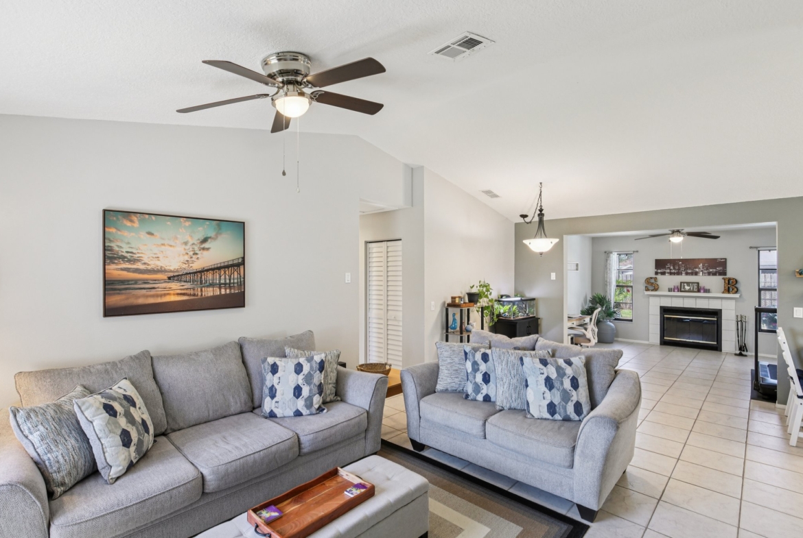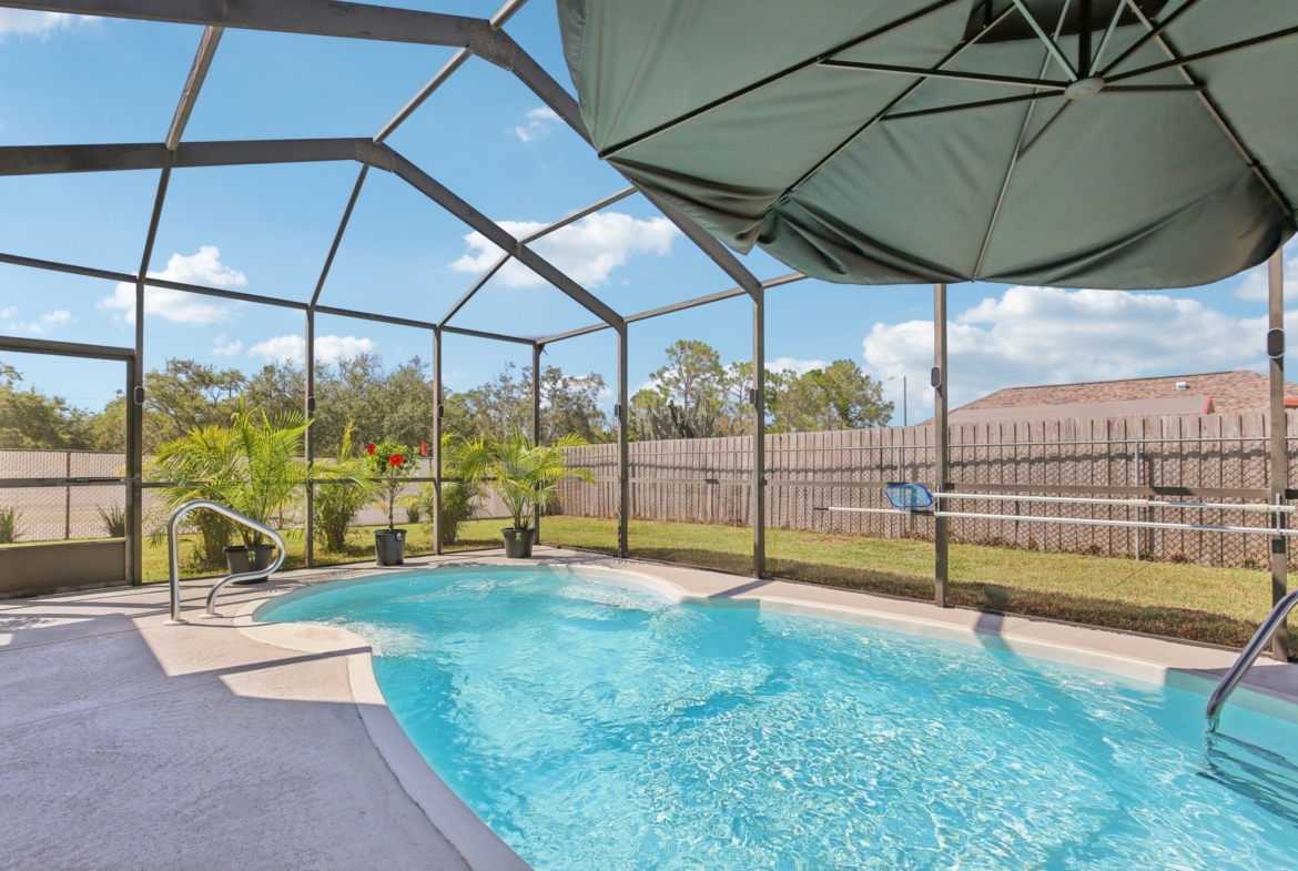 Welcome to this well-maintained 2-bedroom, 2-bath pool home with a 1-car garage, ideally located in Pasco. This home offers a bright, open floor plan with cathedral and vaulted ceilings that create a spacious and inviting atmosphere. The living areas feature updated porcelain tile flooring, while the bedrooms have wood laminate. Both bathrooms are finished with ceramic tile. The family room includes a fireplace and sliding glass doors that lead to a large Florida room and a screened in-ground pool. The pool area is surrounded by cool deck surfacing, making it a great space for relaxing or entertaining. The kitchen provides ample cabinet space, generous countertops, appliances, and a convenient breakfast bar for casual dining. The oversized garage includes a workbench, A/C, and peel-and-stick wood-look flooring, making it ideal for use as a workshop. It also houses a matching black stainless steel Whirlpool washer and dryer set from October 2023, which will stay with the home. On the side of the garage, you’ll find an attached storage shed with power for added convenience. Located close to shopping, restaurants, the library, and public transportation, this home offers comfort, space, and a great Florida lifestyle. Schedule your visit today!